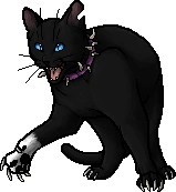 Attila è un gatto nero con occhi azzurri ed una zampa bianca,indossa un collare di denti di cane ed ha artigli di denti di cane.