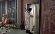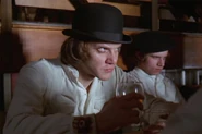 Во время драки с бандой Свиньи Билли Алекс использовал стул и его обломки для нанесения ударов по противнику, а также розочку для причинения колюще-режущих травм. В книге же Алекс орудует бритвой.