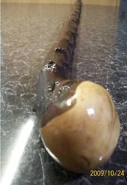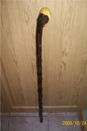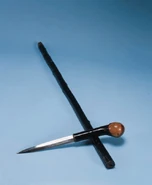 Алекс был вооружен традиционной ирландской тростью бата. Навершие в виде шара являлось одновременно и ударной частью трости, и рукояткой кинжала, который был скрыт в корпусе баты (подобная конструкция используется в мече-трости). Скрытый клинок Алекс использовал во время сцены на набережной: сначала ударами баты по друзьям он сбил их в воду, после чего протянул руку, якобы для помощи друзьям. Как только находящийся в воде Тём подал ему руку, Алекс вытащил скрытый клинок и сделал порез на руке друга. Сам клинок был небольшой длины — около 15 сантиметров.