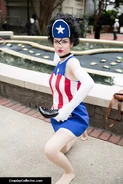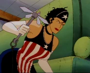 - Возможно, Американская Дева является пародией на персонажа комиксов Marvel Капитана Америку.