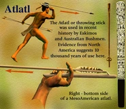 Атлатль (науат. Копьеметалка) — ацтекская копьеметалка с эффективной дальностью около 50 метров.