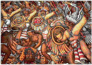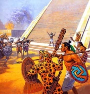 Главной особенностью ацтеков было то, что во время боя они старались не убить противника, а лишь вывести его из строя и захватить в плен. После боя все пленные приносились в жертву, а воины, пленившие определенное количество противников, получали более высокий статус, и, соответственно, лучшее обмундирование.