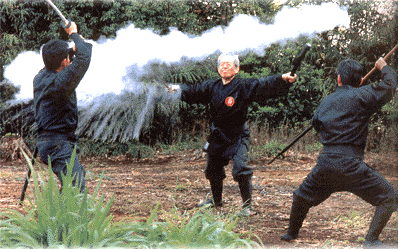 Ослепление противника, вооружённого мечом при помощи броска мэцубуси в технике хэкито.