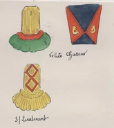 Панталоны — белые, гетры — черные (на походе одевали серые рейтузы). При парадной форме велиты носили меховые шапки с султаном зеленого, красного цвета или зеленого с красным верхом (данные в разных источниках разнятся) и красным донышком и изображением желтой гренады на нем, на походе – кивера. Этишкет был либо красного, либо желтого, либо зеленого цвета.