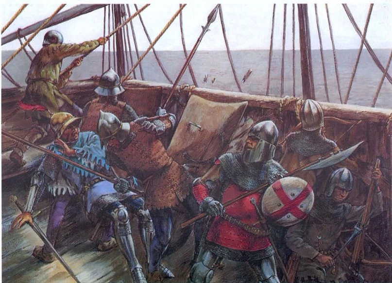 - Битва при Слейсе (24 июня 1340 года) — морское сражение, большая часть кораблей французов была нанята в Генуе вместе с экипажами. На каждом было около 25 арбалетчиков.