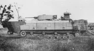 Ходовая часть применительно на один борт состояла из 8 сдвоенных опорных катков, сблокированных по два, 4 поддерживающих ролика, ведущее колесо переднего расположения (зацепление цевочное) подвеска типа Хара, гусеница мелкозвенчатая, с одним гребнем.