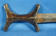 У некоторых кинжалах в конце рукояти вставлена серебряная монетка.