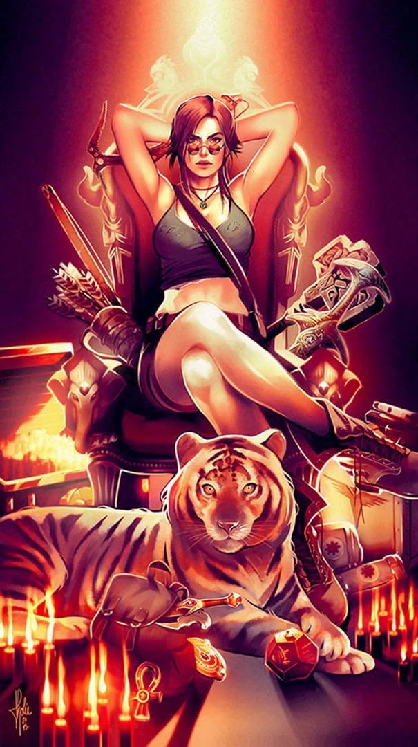 - Наконец боевой опыт Лары также не знает границ. За всю свою археологическую карьеру госпожа Крофт повстречала и истребила неисчислимее количество вооружённых до зубов военных и наёмников, диких зверей, динозавров, мутантов, гигантских йети и морозных гигантов, огромных пауков и осьминогов, динозавров, оживших мертвецов, драконов, магов-культистов и древних божеств, выходя победителем из каждого возможного столкновения. А также находила и использовала такие магические артефакты как Мьольнир – молот Тора, легендарный магический клинок Экскалибур, Ковчег Завета, философский камень и даже буквальные Райские Врата.