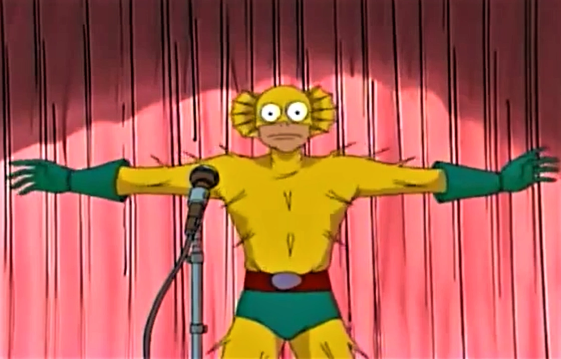- Очевидно, что Мститель-рыба-пузырь высмеивает сразу огромное количество разнообразных персонажей, которые имеют псевдоним и внешний вид, связанный с определенным животным, а также зачастую имеющие способности, традиционно ассоциируемые с данным животным.