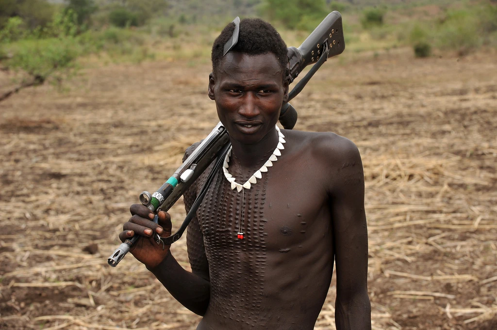 К счастью, кормилица Омо предсказуема – благодаря этому поселившееся на ее берегах племя каро может жить оседло. Когда-то каро контролировало всю землю по обеим сторонам Омо, но затем их начали теснить ньянгатом, которые одними из первых в этом регионе вооружились стрелковым оружием и стали нападать на соседей вроде каро, все еще размахивающих копьями. Представители других племен, которым не повезло жить у реки, вынуждены время от времени перегонять скот на новые пастбища.