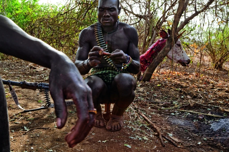 В последнее время межплеменные конфликты стали более жестокими, поскольку в свое время многие нилотские племена приняли участие во Второй гражданской войне в Судане, что научило их прекрасно обращаться с огнестрельным оружием. У ньянгатом автоматическое оружие появилось в 1990-х годах из-за их соперничества с народом туркана. Сегодня купить, например, АКМ, можно у повстанцев из Судана за четыре коровы. Но несмотря на вражду, каро часто покупают оружие и у ньянгатом. Когда речь заходит о выгодной сделке, все остальное отступает на второй план. Впрочем, мужчины, вооруженные автоматами, уверяют, что гнев вождя или старейшин страшнее пули: пуля может пролететь мимо, а проклятие вождя – верная смерть.