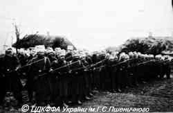 Формированием и военной подготовкой серожупанников, проходившей с марта 1918 в г. Владимире-Волынском, руководила австрийская военная миссия во главе с капитаном генштаба Кватерником (его адъютант был сотник Иван Коссак). Сформированная дивизия получила наименование Первая стрелецко-казацкая дивизия; в её состав входили 4 пехотных полка, артдивизион, конная и инженерная сотни и вспомогательные подразделения. Личный состав на 1 июля 1918 года — 140 старшин и 6 тыс. казаков; командир — подполковник И. Перлик (начальник штаба — сотник О. Пилипенко).