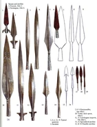 Существовали и специальные метательные копья, аналогичные европейским дротикам и сулицам. Такие копья были короче, с более узким наконечником. Часто на них закреплялось металлическое кольцо, обозначавшее центр тяжести и помогающее воину придать броску правильное направление.