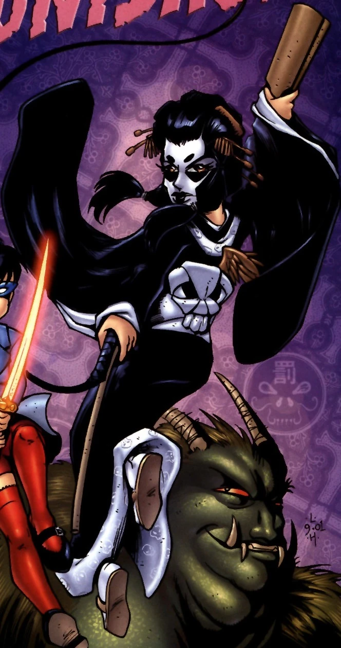 Сосуми Браун носит костюм, в котором похожа на гейшу, и наносит макияж, дабы ее лицо напоминало череп, что является отсылкой к оригинальному Карателю.