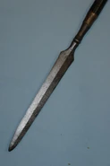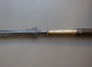 Наконечник суматранского копья имеет довольно характерную форму. Он достаточно длинный и узкий, кромки практически параллельны по отношению к друг другу, редко встречаются с небольшим изгибом, к острию наконечник закругляется. Иногда основание лезвия украшается металлическими фигурными узорами, что свидетельствует о высоком материальном положении владельца копья.