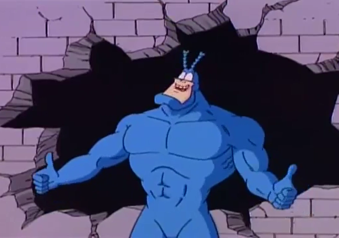 В первой серии Тик прибыл на ежегодный конкурс супергероев в городе Рино, штат Невада, США. Чтобы впечатлить судей, он притащил с собой ужасную машину для пыток, которая взрывается и разрушает все здание, в котором происходил конкурс. Тем не менее, Тика отправляют в город с незатейливым названием Город, где он начинает бороться с преступностью. Сначала он мешает Людям Идей ограбить банк, а затем спасает он наводнения город, когда бандиты захватили дамбу и намеревались её взорвать.