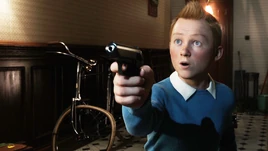 Тинтин с пистолетом в комиксе (сверху) и в фильме 2011 г.