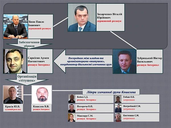 18 ноября 2015 г. ГПУ сообщило, что в феврале 2014 г. бывшее руководство Министерства внутренних дел выдало "титушкам" из мобилизационных складов МВД 408 единиц автоматического огнестрельного оружия и 90 000 патронов. Также было отмечено, что указание на выдачу этого оружия со складов отдавал непосредственно экс-министр внутренних дел Виталий Захарченко.