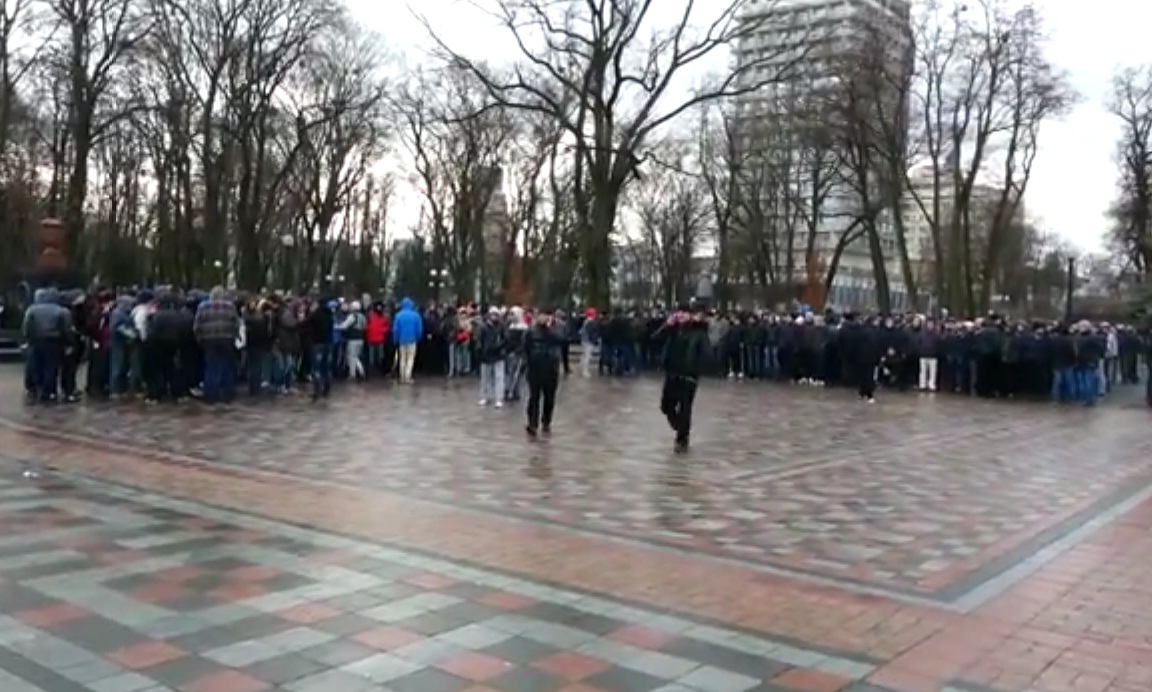 Так скопление "титушек" было обнаружено на Контрактовой площади. После того, как их заметили, титушки скрылись в неизвестном направлении. Двоих активистам удалось догнать. Ребята заявили, что им обещали по 220 гривен. По данным очевидцев, в районе Михайловской площади были замечены около 200−300 спортивных парней, вооруженных обрезками труб.