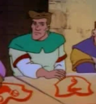 Тоун в повседневной одежде, сидит за Круглым Столом в Камелоте.