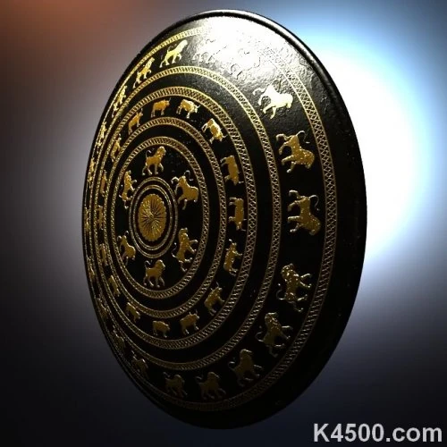 Учёным известно много парадных бронзовых урартских щитов. Все парадные щиты были украшены концентрическими кругами львов и быков. Такие щиты не были предназначены для ведения боя, толщина бронзового листа, характер креплений в задней части таких щитов свидетельствует о том, что они использовались для подношения (например, храмам), где вешались на стены. Диаметр таких щитов колебался от 70 сантиметров до метра. Изображения наносились штампом, а затем расчеканивались различными инструментами. Композиция щитов была продумана таким образом, чтобы ни одна из фигур не оказывалась при осмотре перевёрнутой. Несколько таких щитов были обнаружены в районе Вана, откуда попали в Британский музей и в музеи Берлина, четырнадцать таких щитов были обнаружены при раскопках Тейшебаини на Кармир-Блуре.