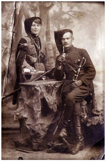 В центре — первый командир части, кадровый военный-кавалерист, сотник Николай Римский-Корсаков.
