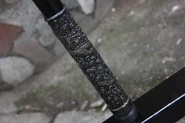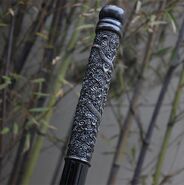Существовали и посохи, созданные целиком из металла. Согласно источнику, написанному в 1558 г., шаолиньские монахи использовали железные посохи весом 18 кг (число, впрочем, может быть немного преувеличено) и ломали ними катаны, если ронины пытались заблокировать удар монахов своими мечами.