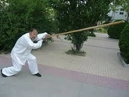 | “ | Во всех видах боевой подготовки для любого оружия есть чудесное использование, но нигде нет такого многообразия методов действий корпусом, руками и ногами, как в технике владения шестом. С копьём есть среднеуровневый укол, у кулака есть прямой удар — и с шестом есть прямой удар. С мечом-цзянь есть "оседлать лошадь и разделить гриву", у кулака есть "вытянуться на лошади" — и с шестом есть форма перешагивания меча. С плетёным щитом есть косое передвижение, в кулачных методах есть скачущий шаг — и у шеста есть форма осёдлывания лошади. В кулачных методах есть отступающий шаг вправо, с длинным японским мечом есть смотрение на меч — и с шестом есть форма разрубания горы в шаге... и так далее, всего не перечесть.
