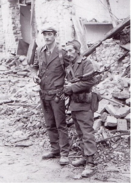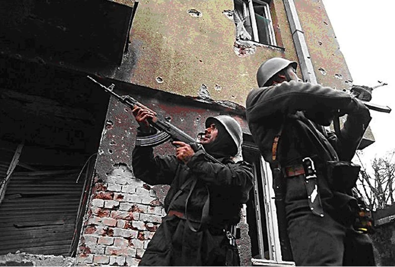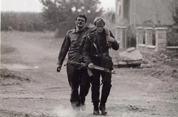 Бойцы ЮНА на улицах взятого Вуковара в момент окончания боевых действий.