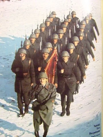 Югославская Народная армия с 1946 г. имела своеобразную форменную одежду со знаками различия схожими с принятыми в Советской Армии.