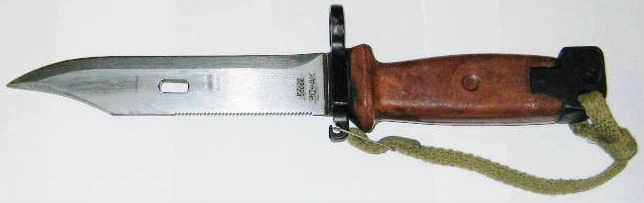 Ножны изготовлены из пластмассы и имеют металлический наконечник. С помощью специального выступа на ножнах и отверстия на клинке возможно их соединение в ножницы для резки проволоки.