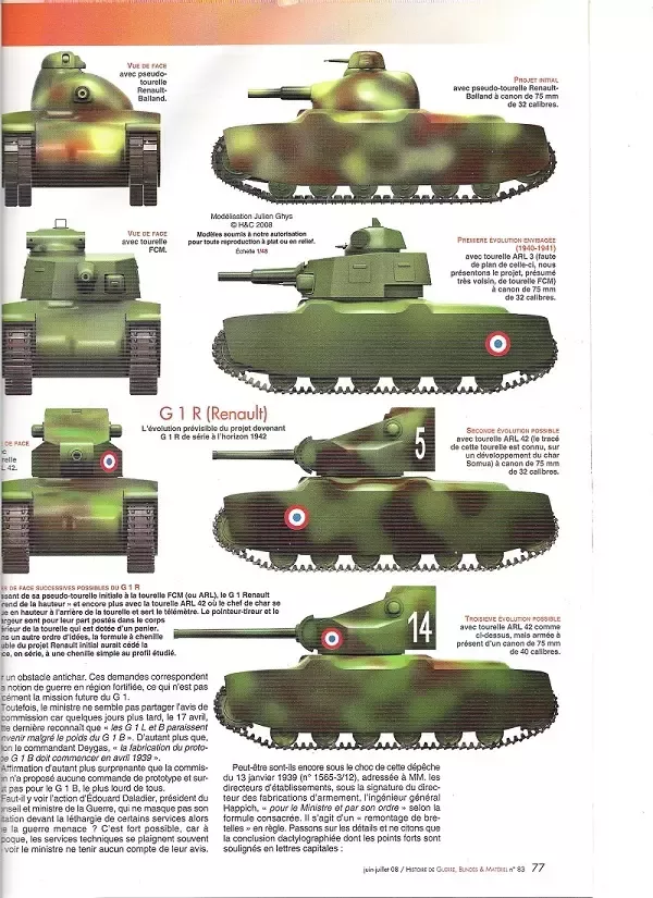 10 сентября 1939 года Char G1R был единственным из проектов, который должен был получить дальнейшее развитие, вероятно, потому, что компания Renault была исключительной тем, что имела резервные производственные мощности.