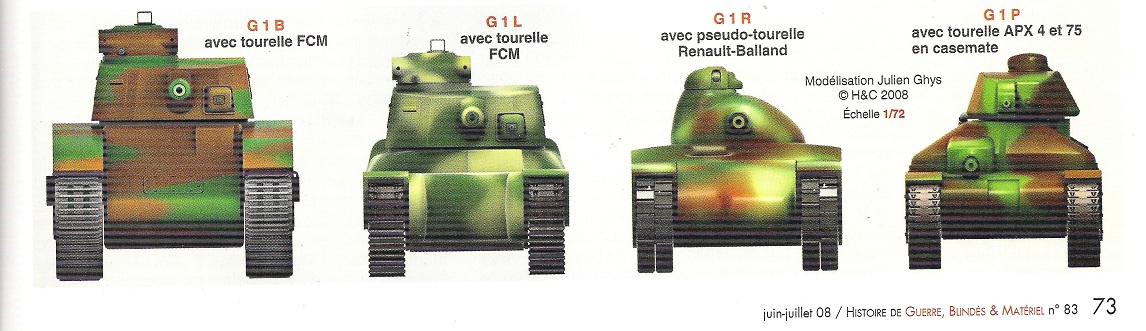 В конце 1937 года проект был переименован в Char G1, и все прототипы, утвержденные на тот момент, получили официальное обозначение: Lorraine: G1L; Renault: G1R; Baudet-Donon-Roussel: G1B; Fougaa G1F; и SEAM: G1P. Проекты SOMUA и FCM были прекращены из-за слишком расплывчатости или отсутствия инноваций; также производственные мощности этих двух компаний уже были направлены на производство других типов.