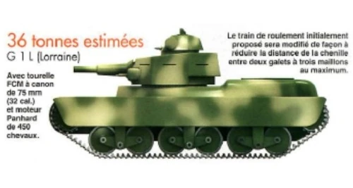 Летом 1938 г. был готов простой стальной макет; Компания предсказывала, что производство может начаться в 1941 году. Однако изменения спецификации 1939 года нарушили этот план. Когда конструкция Char G1L была изменена для установки 75-мм орудийной башни, расчетная масса увеличилась до 36 тонн. Даже первое предложение предполагало вес пустого корпуса в 16 тонн. Чтобы компенсировать больший вес, планировался более мощный двигатель Панара мощностью 450 л.с. однако, чтобы разместить этот более крупный и мощный двигатель, моторная часть должна была быть поднята так высоко, что это препятствовало бы полному вращению более тяжелой башни FCM. С изменением подвески двигателя и башни высота танка составила бы 290 см. Также элементы подвески грозили перегрузкой; давление на грунт гусеницы составляло шесть килограммов на квадратный сантиметр, В начале 1939 года 'Лоррейн' попыталась сохранить жизнеспособность проекта, создав башню, унаследованную от типа ARL 3, поскольку ни одна башня ARL 3 еще не была построена, даже в виде макета. Эта башня Lorraine была несколько ниже, что помогало с общей высотой; однако уменьшенная высота новой башни привела к ограниченному наклону орудия. 13 апреля 1939 года комиссия рекомендовала отказаться от проекта G1L, но в этом было отказано министерством обороны.10 сентября, после начала войны, его окончательно приостановили.