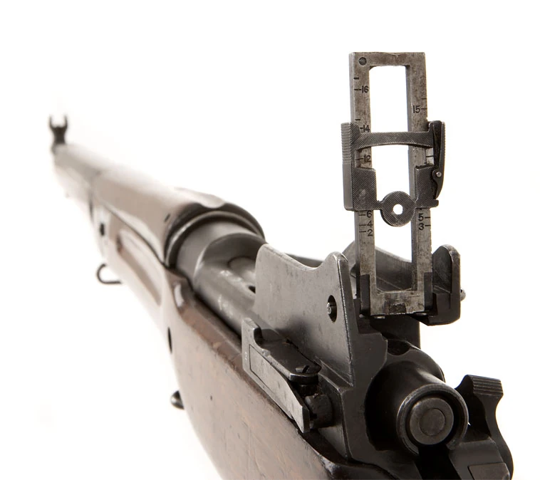 На тыльной части ствольной коробки установлен кольцевой прицел с делениями от 200 до 1650 ярдов. Прицел не имеет установок по горизонтали. От наружных повреждений он защищен боковыми стенками колодки. Слева ствольной коробки имеется складной сквозной прицел для дальней стрельбы, устроенный аналогично подобному же прицелу на винтовке Ли-Энфильд 1904 г. Боковая подъемная мушка имеет деления для дистанций от 1500 до 2600 ярдов.