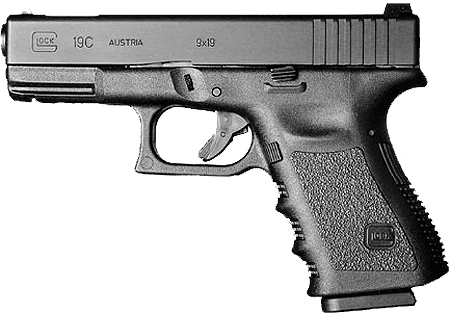 - Glock 19C — оснащён компенсатором у дульного среза и отверстиями в затворе-кожухе под ним, уменьшающими подскок оружия при выстреле.