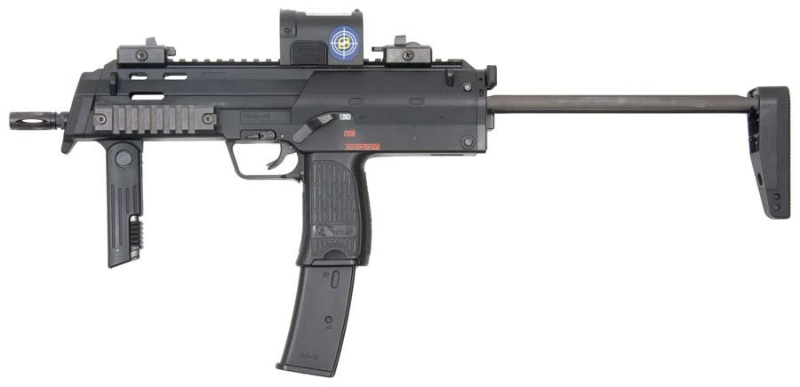 MP7 — автоматическое оружие под специально разработанный для него патрон 4,6×30 мм. MP7 скомпонован по типу компактного пистолета-пулемёта, магазин вставляется в пистолетную рукоятку, приклад складной, телескопический, спереди имеется складная штурмовая рукоять.
