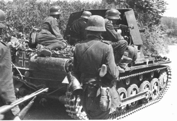 Вопреки распространенному в нашей литературе мнению Panzerjager принимали очень ограниченное участие в военных кампаниях 1940 - 1941 гг. В ходе вторжения во Францию и страны Бенилюкса в составе ударной группировки немецких войск находилось всего четыре истребительно-противотанковых батальона типа Pz.Abt.(mos T). Один из них был придан группе Клейста и участвовал в боевых действиях с 10 мая 1940 г. Три других, с номерами 616, 643 и 670, вводились в бои по мере достижения боевой готовности.