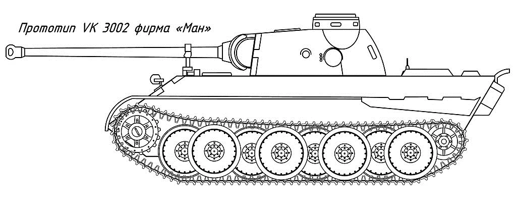 Прототип фирмы MAN был выдержан целиком в духе немецкой танкостроительной школы: переднее расположение трансмиссионного отделения и заднее — моторного, индивидуальная торсионная "шахматная" подвеска конструкции инженера Г. Книпкампа. В качестве основного вооружения на танк устанавливалась указанная фюрером 75-мм длинноствольная пушка фирмы "Рейнметалл" (Rheinmetall). Выбор относительно небольшого калибра определялся желанием получить высокую скорострельность и большой возимый боезапас внутри танка. Интересно, что в проектах обеих фирм немецкие инженеры сразу же отказались от подвески типа Кристи, использовавшейся в Т-34, сочтя её конструкцию негодной и устаревшей. Над созданием "Пантеры" работала большая группа сотрудников фирмы MAN под руководством главного инженера танкового отдела фирмы П. Вибикке. Также значительный вклад в создание танка внёс инженер Г. Книпкамп (ходовая часть) и конструкторы фирмы "Рейнметалл" (пушка).