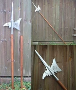 Алебарда — древкове рублячо-колюча холодна зброя з комбінованим наконечником, що складається з голчастого (круглого або гранованого) копейного вістря і леза бойової сокири з гострим обухом. Перебувала на озброєнні піхоти низки європейських країн з XIII по XVII століття, отримавши найбільше поширення в XV-XVI століттях як ефективна зброя проти добре захищеної кавалерії. Пізніше використовувалася як парадно-церемоніальна зброя, в такій якості і донині перебуває на озброєнні швейцарської гвардії Ватикану.