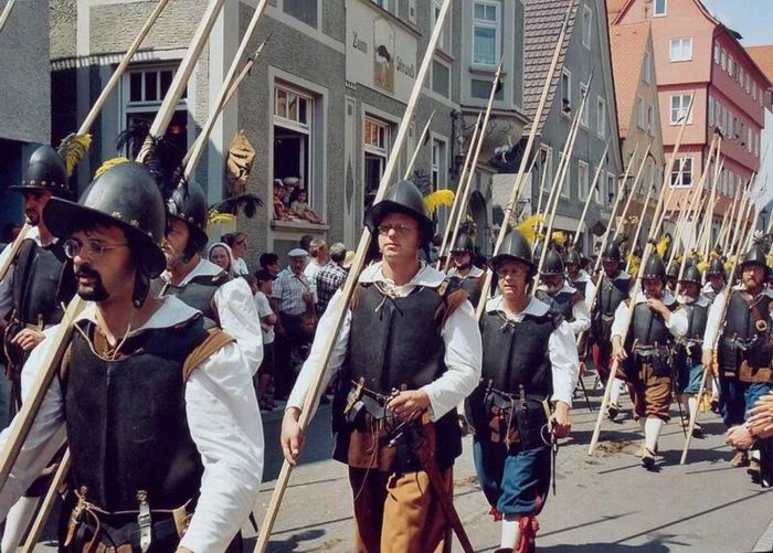 Злагоджено діюча побудова пікінерів представляла грізну силу в обороні, але відрізнялося низькою мобільністю при атаці. Попередники пікінерів з'явилися в кінці 13 -го століття в Шотландії, де бунтівні шотландці були творцями щільних формацій списоносців, так звані schiltrons. Ця тактика була відпрацьована в Швейцарії, де спочатку з алебардами, а потім з списами, швейцарські піхотинці в декількох боях завдали важкі поразки австрійським лицарям. Поява пікінерів на полях битв в Європі в 14- му столітті прискорило кризу лицарства, і проклала шлях найманцям 15-17 століть. Швейцарці боролися в дуже великих загонах, відомих як баталія. Одна баталія може включати в себе тисячі пікінерів. Значення швейцарських пікінерів призвело до появи потобної піхоти в національних арміях всієї Європи.