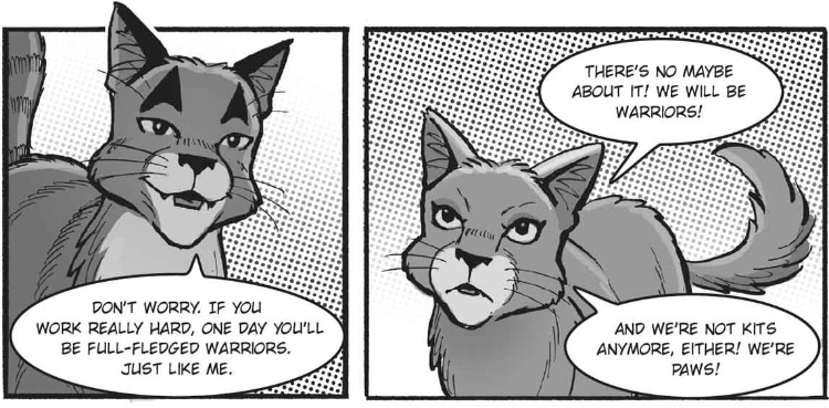 - "Close to him, [Firestar] could see that Bramblepaw's serious expression hid an almost unbearable excitement. He realized how much this ceremony meant to his apprentice; had Bramblepaw sometimes doubted that he would ever be accepted into ThunderClan as a full warrior?"