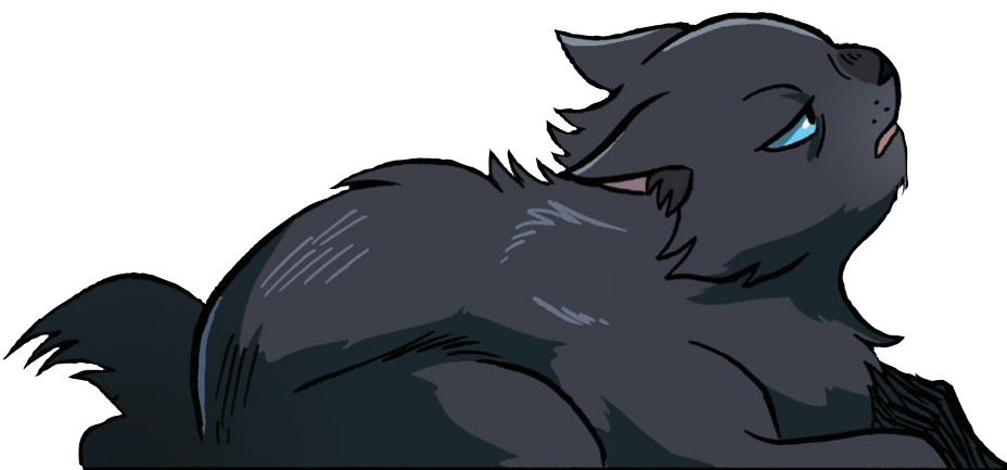 Crowfur is a black tom[1] with blue eyes,[3] a silver muzzle, a scarred flank, and short, patchy fur.[1]