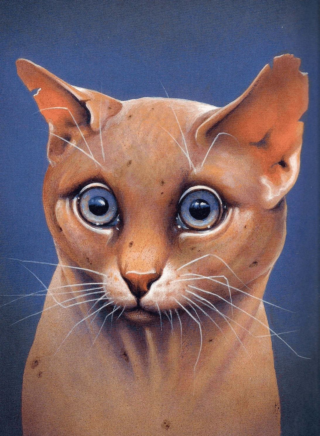 - «This creature's pelt was like moleskin, the fur gone except for a few tufts and his sightless eyes bulged like eggs. His long twisted claws flexed at the smooth branch that lay at his paws.»